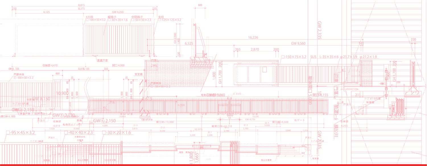 片引自立型1連(2本レール)W8,000 / W12,000(mm)※両引、片引2連など対応可能。ご相談ください。